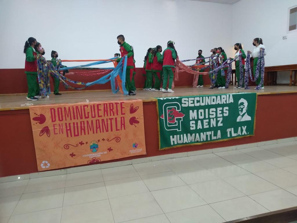 DebatePúblico.- Con el propósito de apoyar el talento artístico y cultural del Pueblo Mágico de Huamantla, se lleva a cabo una edición más de “Dominguearte”, un programa impulsado por el gobierno municipal a través de la Coordinación de Cultura, con la presentación de alumnos y maestros de la Secundaria General Moisés Sáenz.