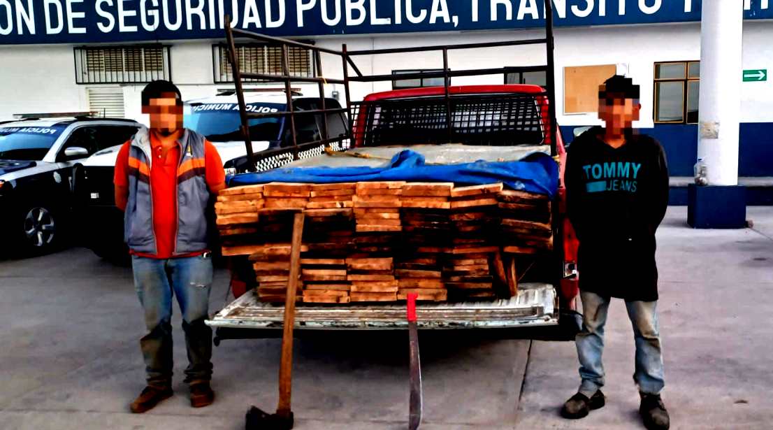 DebatePúblico.- Elementos de la Dirección de Seguridad Publica, Tránsito y Protección Civil, a través de los patrullajes permanentes en el municipio, lograron la detención de dos personas que transportaban material forestal en las inmediaciones de la Malinche.