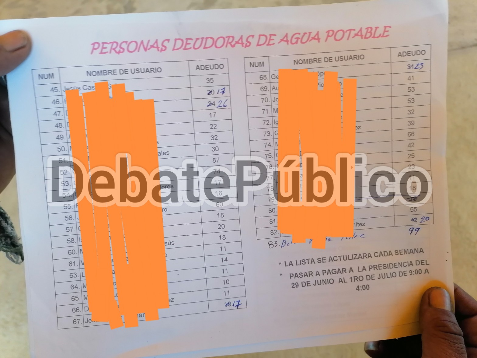 Sostuvieron que el problema con el vital líquido en este lugar, es porque de 400 usuarios inscritos en el padrón del comité y que reciben el servicio, sólo 100 están al corriente con su pago mensual que es de 50 pesos, mientras que más de 300 usuarios deben el servicio, y hay algunos casos que adeudan más de 100 meses, por lo que esta problemática afecta a toda la población.