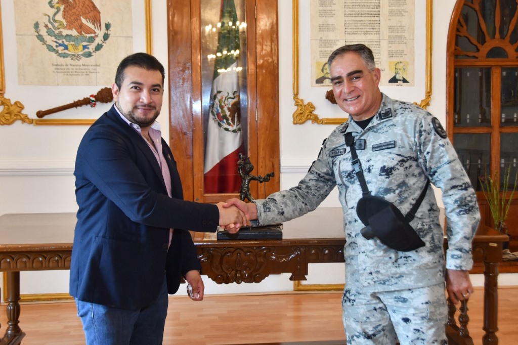 DebatePúblico.- El alcalde Salvador Santos Cedillo, se reunió esta tarde en el despacho de la Presidencia Municipal con el Coordinador Estatal de la Guardia Nacional, el General de Brigadier DEM. Vinicio Perea Alcaraz.