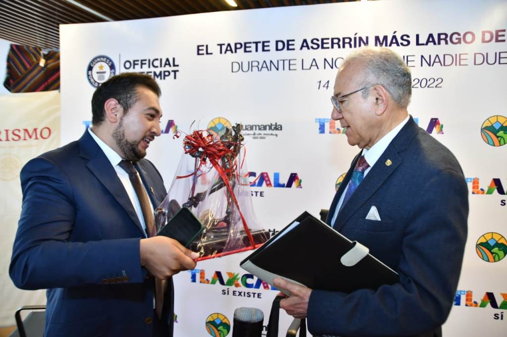 “Estoy seguro que romperán el Récord Guinness del tapete de aserrín más largo del mundo, obra monumental de arte que será confeccionada por las manos mágicas de los talentosos artesanos tlaxcaltecas. Les deseo una fructífera Edición 148 de la Feria de Huamantla 2022, que se ha convertido en símbolo de cultura y de identidad mexicana”, compartió.