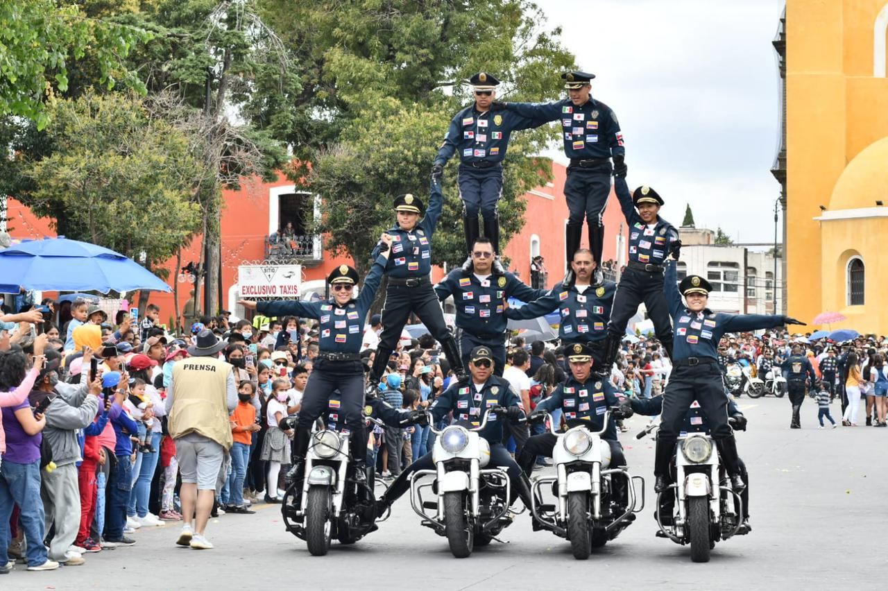 Uno de los momentos más emocionantes fueron cuando el Escuadrón de Acrobacias de la SSP-CDMX, realizó algunas suertes en motocicletas provocando la admiración de todos los asistentes.