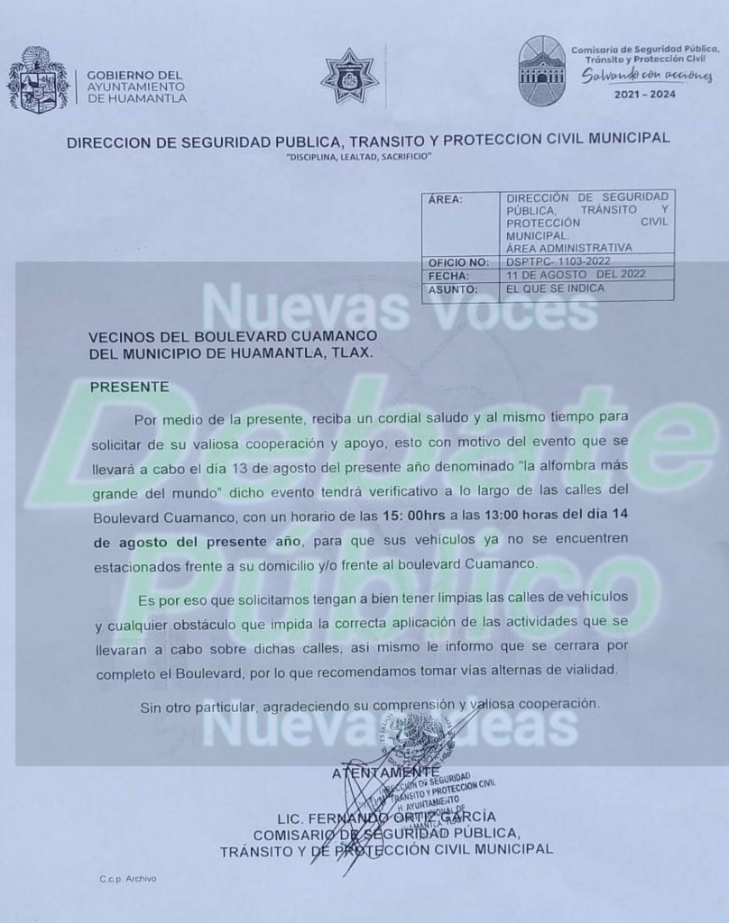 Para ello, las autoridades municipales solicitan la valiosa cooperación y apoyo de los vecinos de la zona, para que eviten la presencia de unidades vehiculares y objetos que obstruyan las actividades que se realizarán, por lo que se recomienda utilizar vías de comunicación alternas.