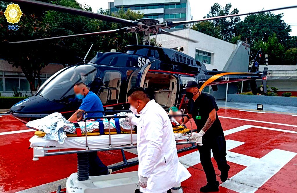 Paramédicos del Escuadrón de Rescate y Urgencias Médicas (ERUM) trasladaron al hombre a los campos de San Luis Tlaxiatemalco, donde un helicóptero lo llevó al Hospital de Xoco.