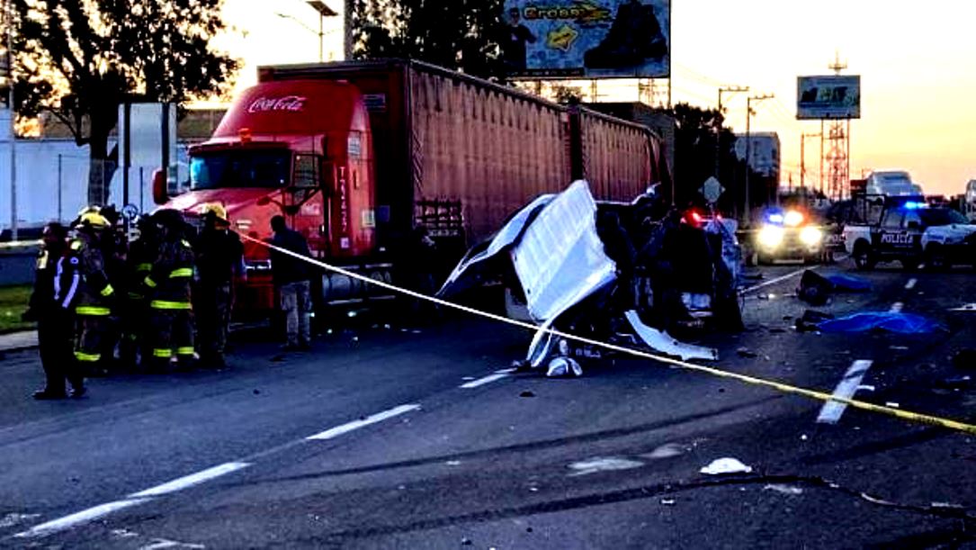 El accidente involucra a tres vehículos: una camioneta Urban tipo van de transporte de personal con número PLE 1721-P que se dirigía a León, un camión tipo torton y un tráiler de la Coca Cola con doble remolque.