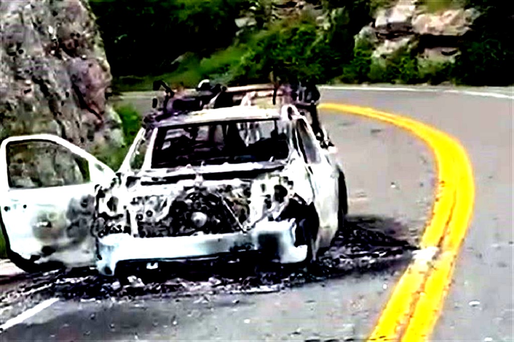 DP.- Dos empleados de la Comisión Federal de Electricidad fueron localizados con vida y dos más muertos, además de que el vehículo en el que viajaban se ubicó completamente incendiado y con impactos de bala, presuntamente habrían sido atacados por el crimen organizado.