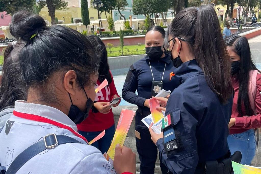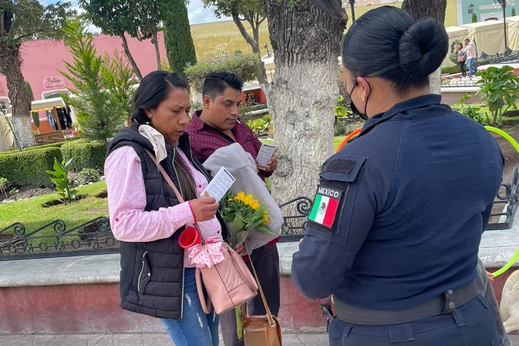 En ese sentido, las y los elementos de seguridad estatales y municipales repartieron folletos con información para que las usuarias puedan conocer los diferentes tipos de violencia, números telefónicos donde pueden recibir atención jurídica y psicológica; y para los más pequeños, un folleto interactivo con información acorde a su edad.