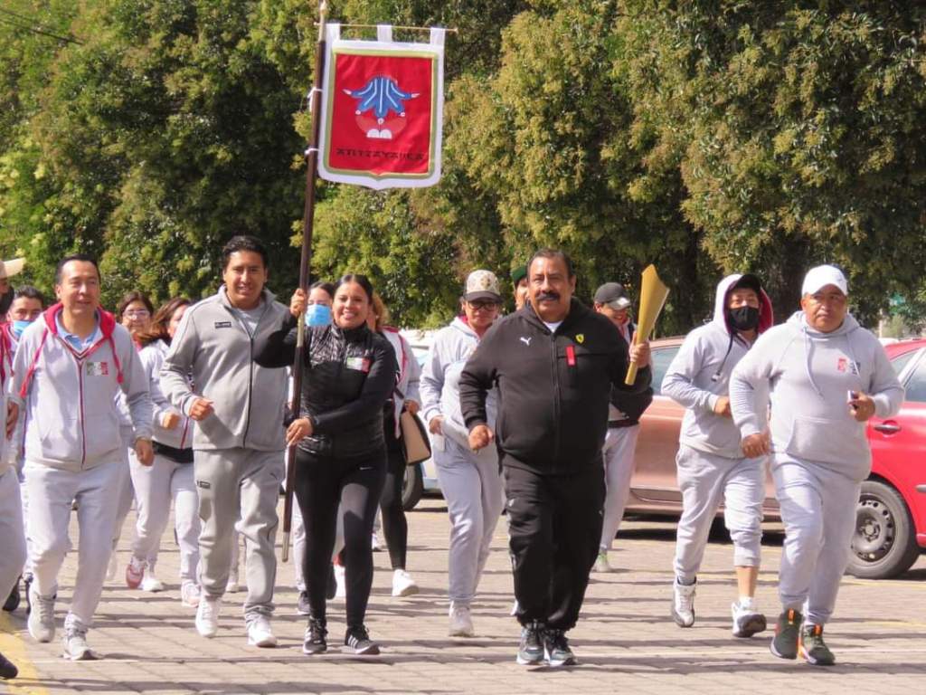 En el domo blanco del Centro Expositor, el Presidente Municipal de Atltzayanca, acompañado por autoridades municipales y presidentes de comunidad, trasladaron el fuego simbólico hasta el Palacio Municipal, para ser entregado más tarde a las comunidades que integran el Ayuntamiento.