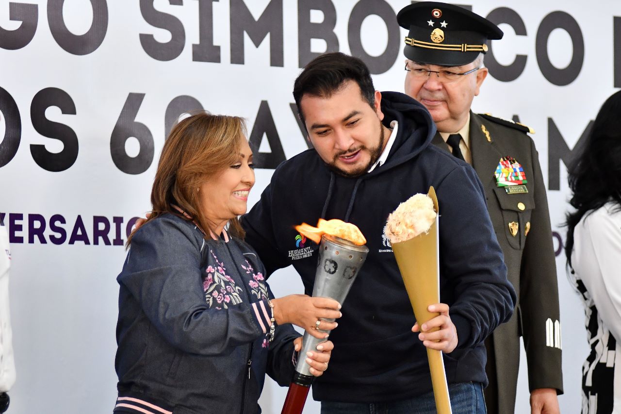 DebatePúblico.- El presidente municipal de Huamantla, Salvador Santos Cedillo, recibió de manos de la gobernadora Lorena Cuéllar Cisneros el fuego simbólico de independencia, como parte de las actividades conmemorativas por el 212 aniversario del inicio del movimiento independentista.