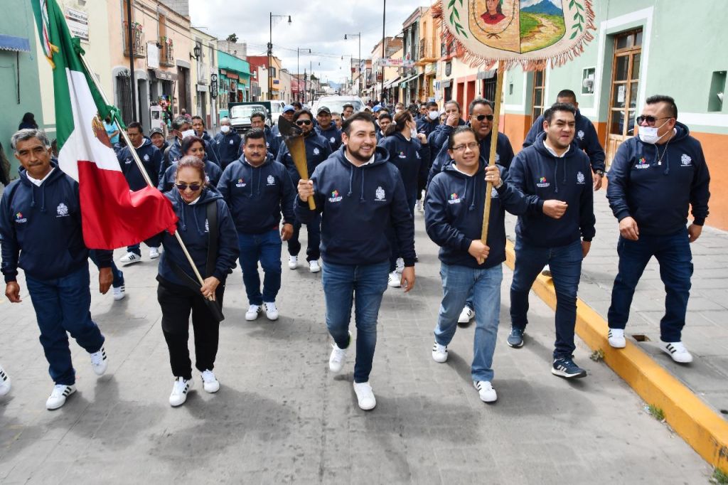 En el domo blanco del Centro Expositor, el alcalde de Huamantla, acompañado por autoridades municipales y presidentes de comunidad, trasladaron el fuego simbólico hasta la presidencia municipal, para ser entregado más tarde a las comunidades que integran el Ayuntamiento.