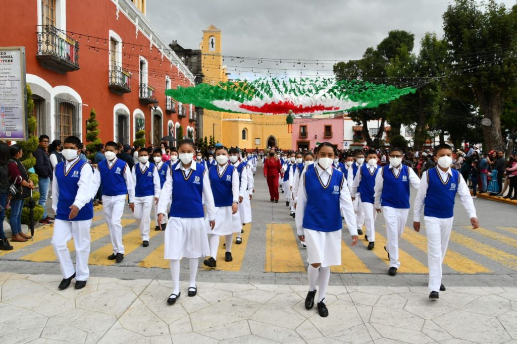 Acompañado por autoridades municipales, presidentes de comunidad y alumnos de la Escuela Primaria Miguel Hidalgo de San Francisco Yancuitlalpan, el edil Santos Cedillo, reconoció la labor de las y los trabajadores del Ayuntamiento y personal de seguridad por la coordinación en la realización de esta fiesta mexicana.