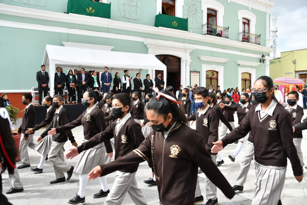 DebatePúblico.- Al rendir honores a la bandera, el presidente municipal Salvador Santos Cedillo reconoció a las y los Huamantlecos por mantener unas fiestas patrias con orden y en paz.