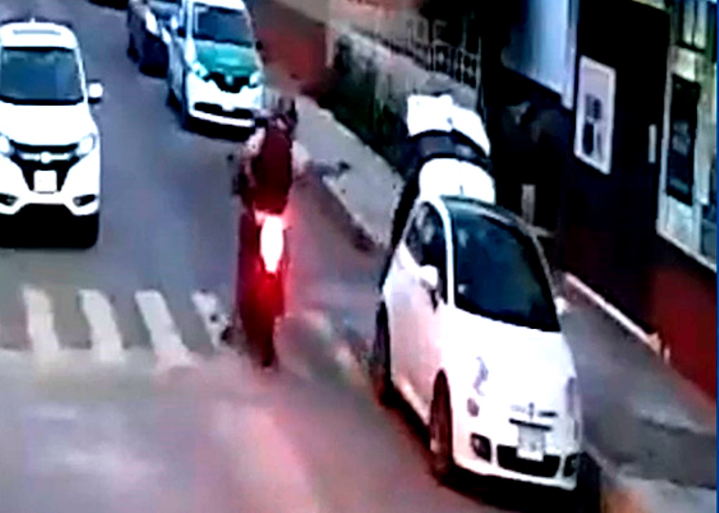 En un video se observa que la mujer identificada con las iniciales E.M.R se estaciona frente a la escuela y cuando va a sacar algo de la cajuela una motocicleta con dos personas se acerca y le disparan directamente.