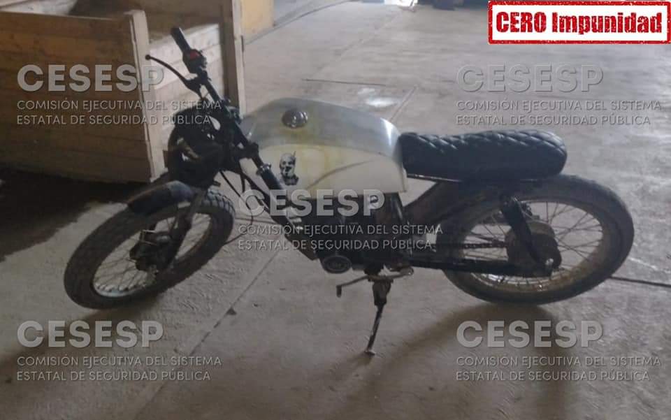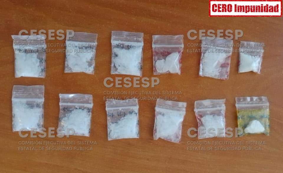 Además fue asegurada una motocicleta marca Italika, tipo Forza 125cc y 12 bolsitas transparentes con polvo granulado con características propias de la sustancia conocida como “cristal”.