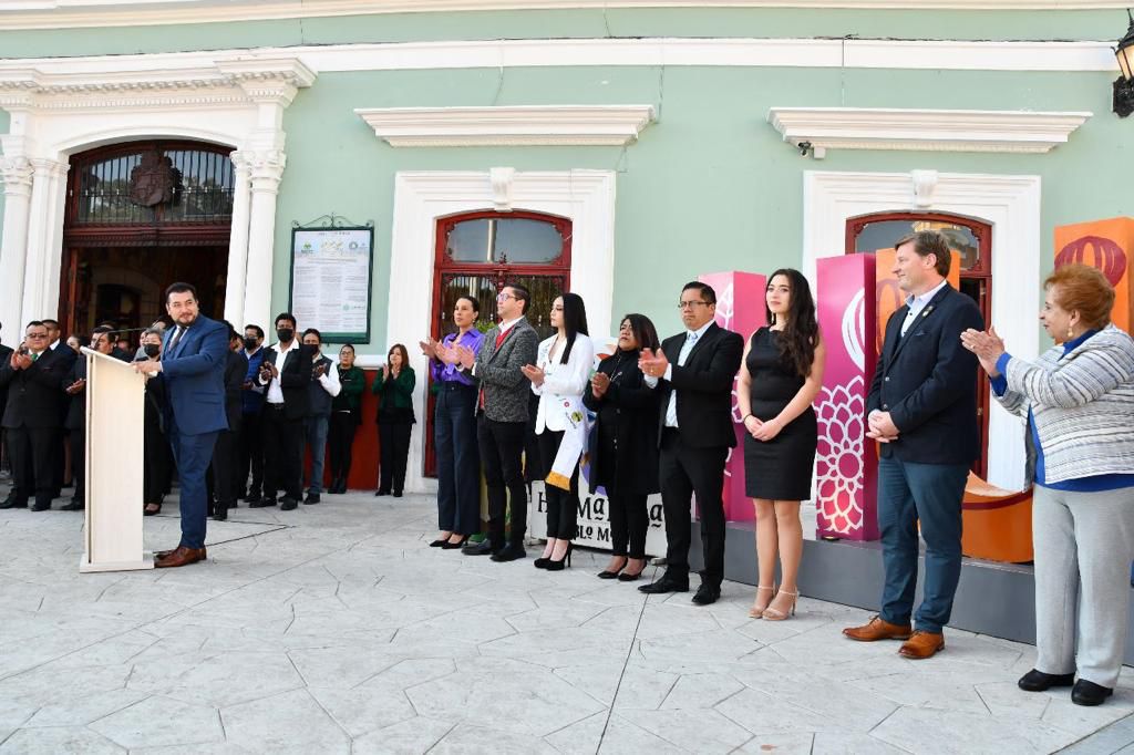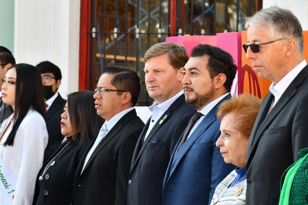 DebatePúblico.- Autoridades municipales y estatales, acompañados por la delegación alemana de la ciudad de Bad Köstritz, encabezaron la ceremonia cívica de honores a la bandera realizada frente a la Presidencia Municipal, donde también se le dio la bienvenida a esta visita oficial como parte del hermanamiento entre estas dos ciudades.