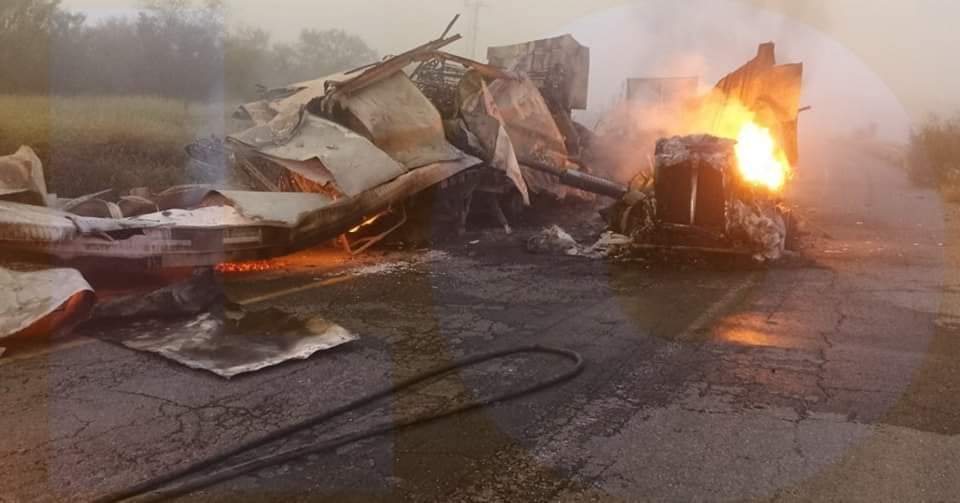 DebatePúblico.- La mañana de este viernes 28 de octubre ocurrió un choque de frente entre dos tráctocamiones, ocasionando el cierre temporal del libramiento Sabinas Hidalgo para realizar maniobras y retirar las pesadas unidades, el lugar del percance es a la altura del cruce a Garza Ayala.