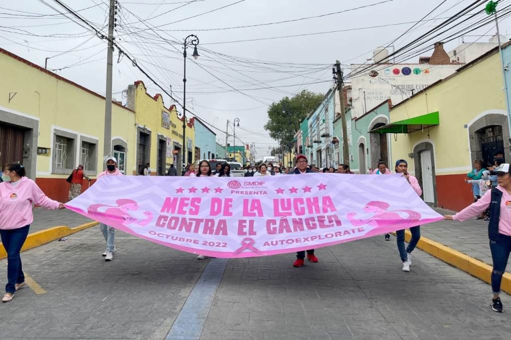 DebatePúblico.- En el marco del mes de la lucha contra el cáncer de mama, el Sistema Municipal para el Desarrollo Integral de la Familia (SMDIF) Huamantla, llevó a cabo una caminata con abuelas y nietas para clausurar las actividades del Mes Rosa.