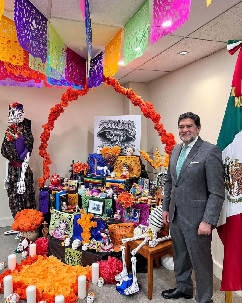 Cabe destacar que para elaborar el altar de muertos se contó con el apoyo del “Dr. William Franco Director Artístico de With Lime, y a miembros de la comunidad mexicana en Wellington”, por lo que el Embajador agradeció su apoyo y creatividad.