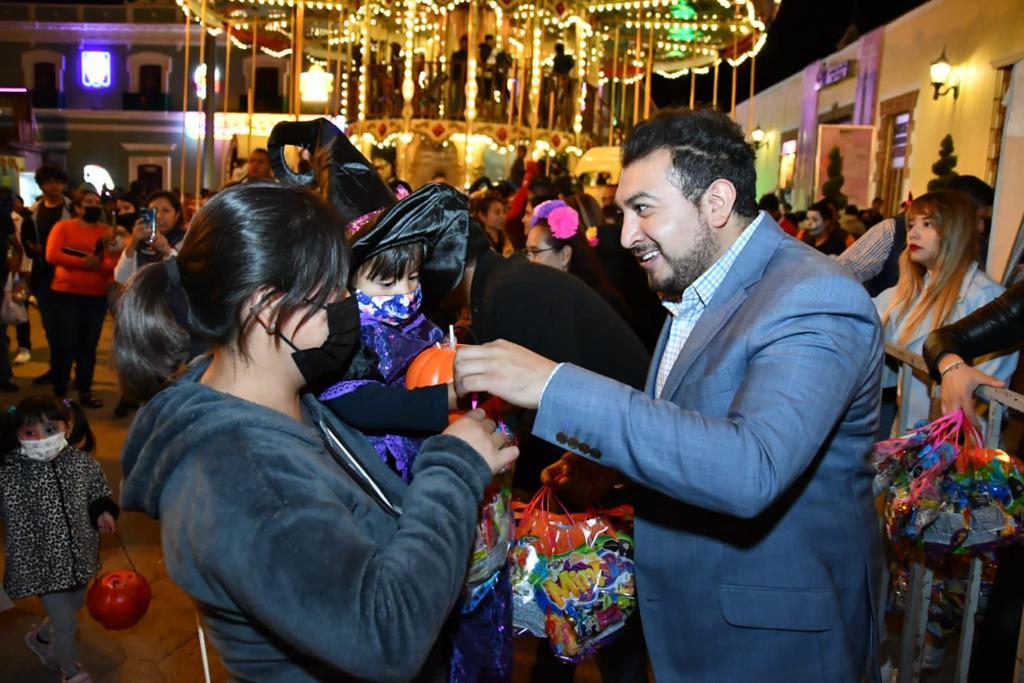 - El presidente Salvador Santos Cedillo entregó dulces a miles de niñas y niños que se disfrazaron para pedir “calaverita”.