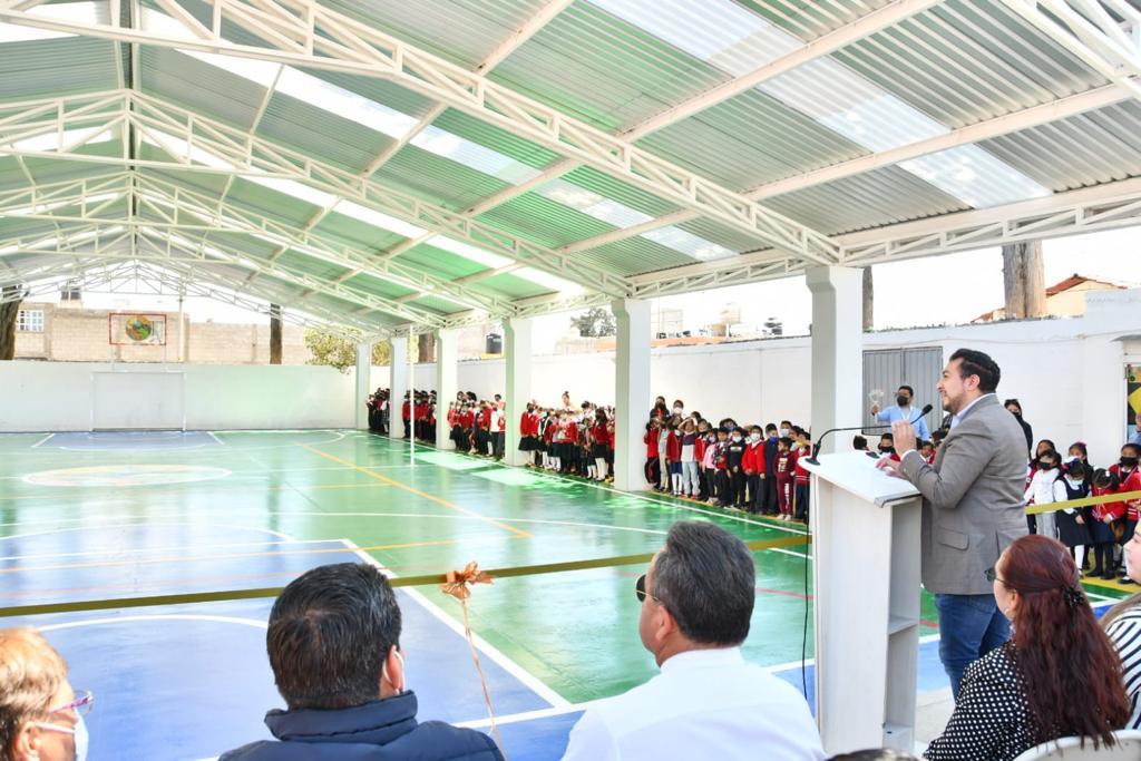 De igual manera, el alcalde anunció que antes de que termine el año entregará tres techumbres más en instituciones educativas que impulsarán el desarrollo académico de niñas, niños y jóvenes huamantlecos.