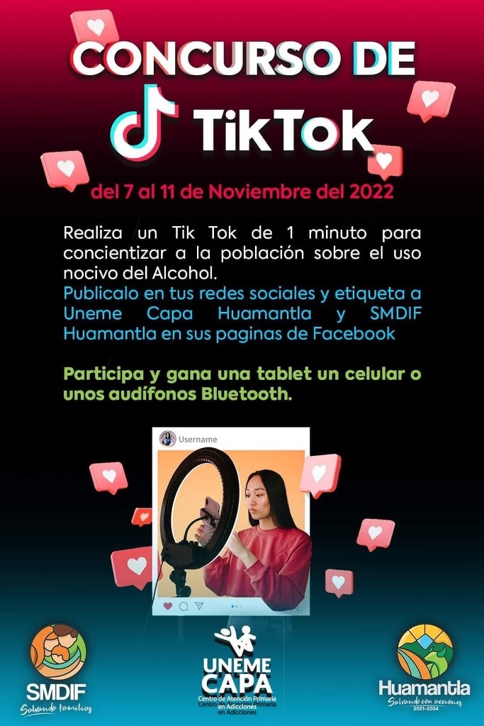 El Tik Tok, deberá ser compartido en sus redes sociales, etiquetando a UNEME CAPA Huamantla y SMDIF Huamantla en sus páginas de Facebook.