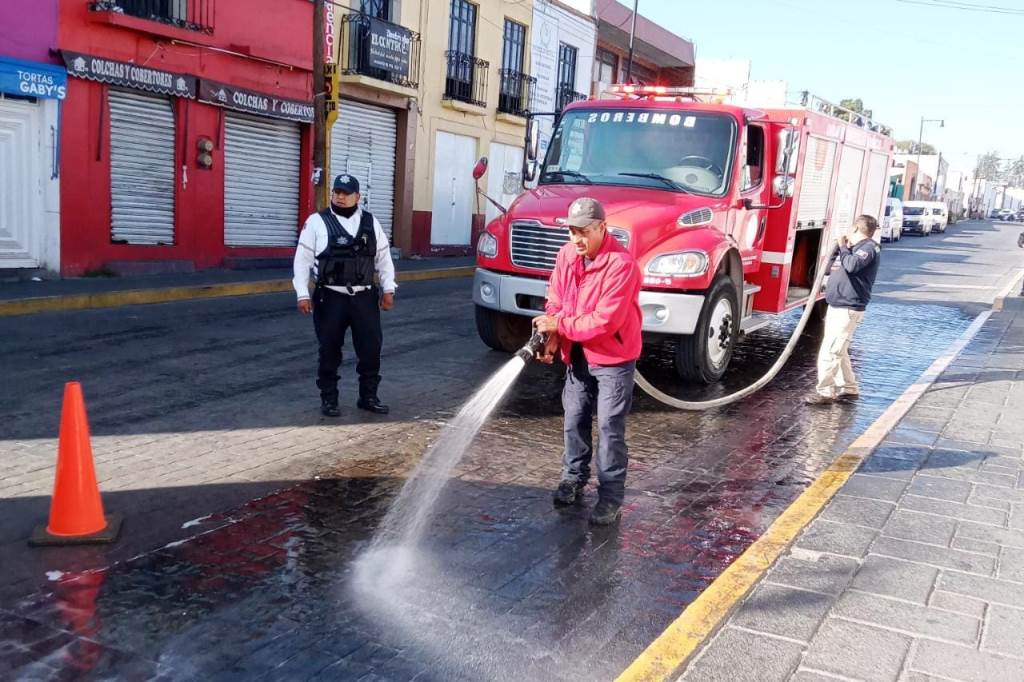 Por su parte, personal de Tránsito municipal abanderó la zona, para facilitar el tránsito de peatones y vehículos; de igual manera, el heroico cuerpo de bomberos de Tlaxcala apoyo en las labores de limpieza de la calle.