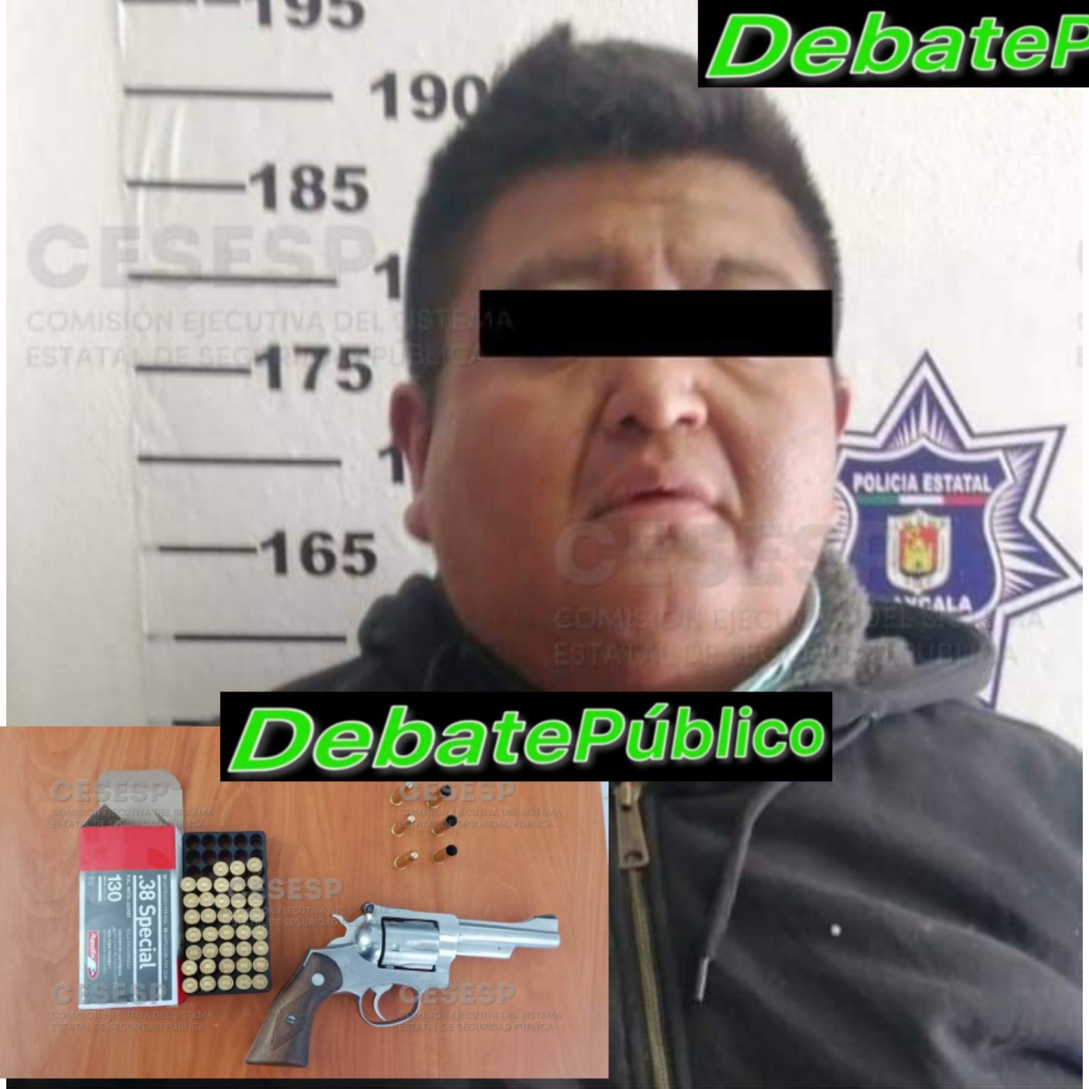 Tras un reporte al número de Emergencias 911, la Policía Estatal de Tlaxcala aseguró a Luis Ángel N., de 32 años de edad, quien no acreditó la legal procedencia de una pistola marca Ruger, calibre 357 mágnum.