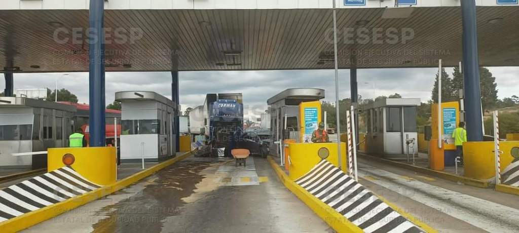 DebatePúblico.- Los Servicios de Emergencia se movilizaron la tarde de este domingo 20 de noviembre, para atender un choque múltiple entre un tráiler acoplado a dos cajas secas y dos vehículos sobre la autopista Arco Norte, en la caseta de cobro con dirección a San Martín Texmelucan.