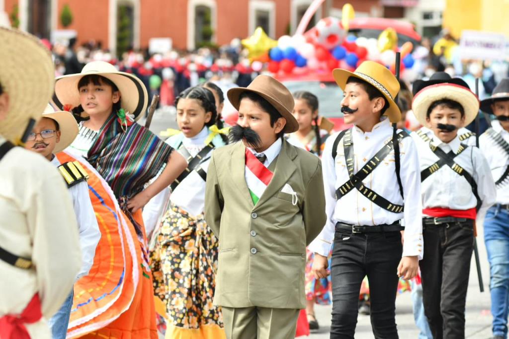 Luego de la ceremonia cívica, dio inicio el desfile conmemorativo del 112 Aniversario de la Revolución Mexicana, con la participación de 18 escuelas donde desfilaron más de mil 500 alumnas y alumnos de Educación Primaria del municipio.