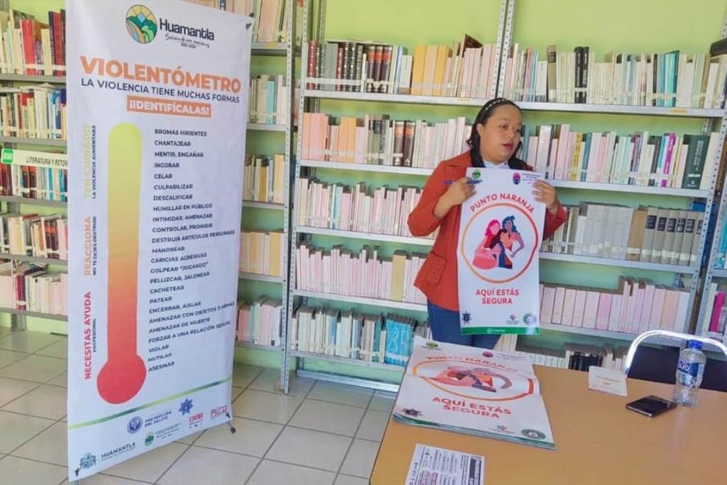 DebatePúblico.- Siguiendo con la estrategia de fortalecer las redes colaborativas a favor de la mujer y en el marco de la conmemoración del Día Internacional de la eliminación de la violencia contra mujeres y niñas, el H. Ayuntamiento de Huamantla que preside Salvador Santos Cedillo, mantiene la implementación de “Puntos Naranjas” en diversos establecimientos de las 39 comunidades del municipio.
