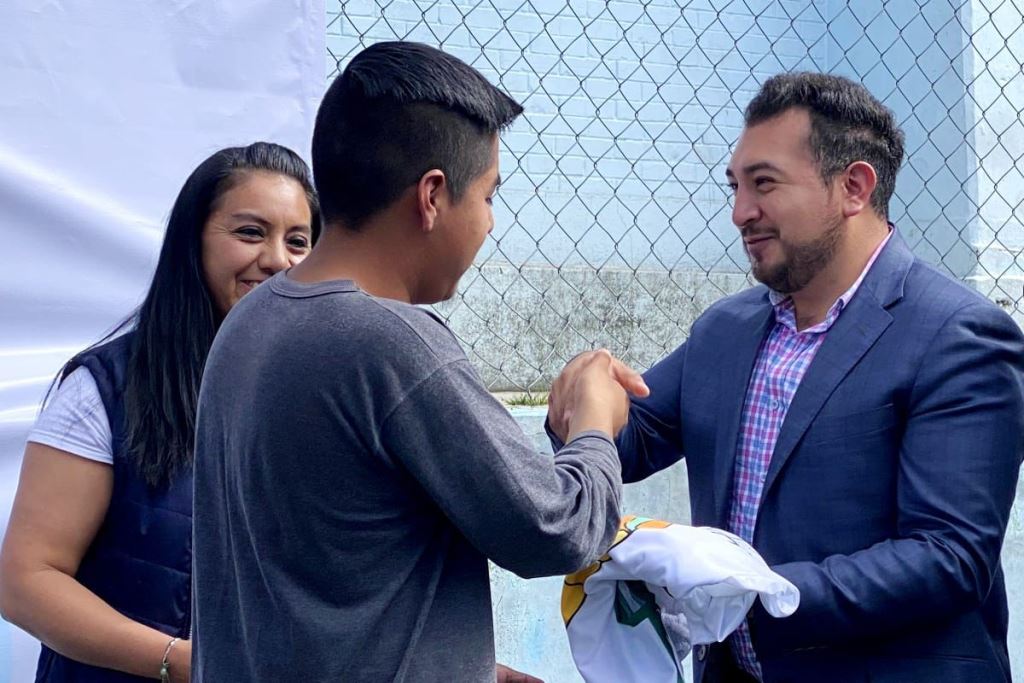 DebatePúblico.- Al hacer entrega de uniformes deportivos a equipos de futbol rápido del municipio, el presidente de Huamantla, Salvador Santos Cedillo, anunció la rehabilitación integral de la Unidad Deportiva “Miguel Arroyo Rosales” para beneficio de los deportistas que hacen uso de estas instalaciones.