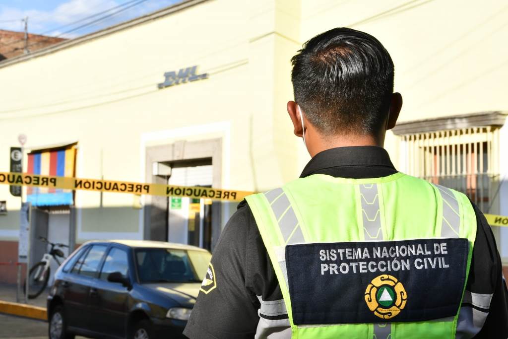 Elementos de la Dirección de Seguridad Pública, Tránsito y Protección Civil de Huamantla, desplegaron un operativo de seguridad en la cabecera municipal, toda vez que fue reportado un paquete sospechoso frente a un negocio de paquetería.