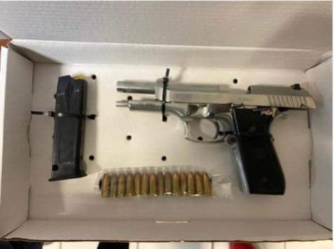 Al momento de la detención del ex policía de investigación se le localizó en la cintura un arma de fuego tipo escuadra, calibre 9mm con un cargador abastecido de 14 cartuchos útiles del uso exclusivo de las Fuerzas Armadas.