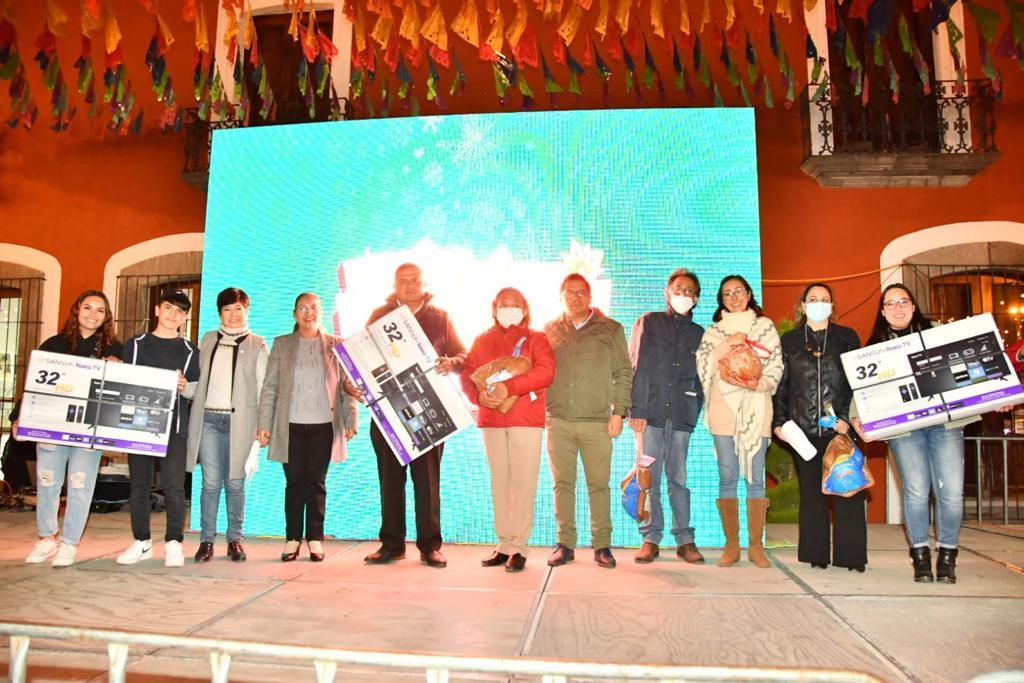 Por ello, las autoridades municipales entregaron premios a las tres mejores fachadas de las calles Hidalgo poniente, Juárez norte y Reforma Sur; entregando una pierna de cerdo al tercer lugar, un pavo al segundo lugar y una pantalla al primer lugar.