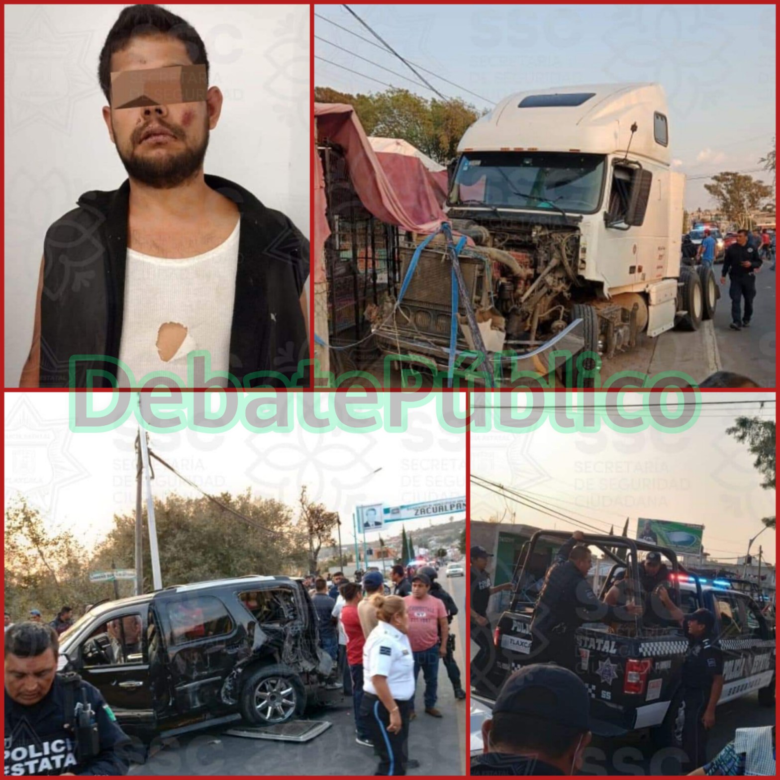 DebatePúblico.- Fuentes de la Secretaría de Seguridad Ciudadana (SSC), del Estado de Tlaxcala, informaron sobre la detención del conductor de un tractocamión que presuntamente ocaciono daños a varios vehículos, este viernes 23 de diciembre.