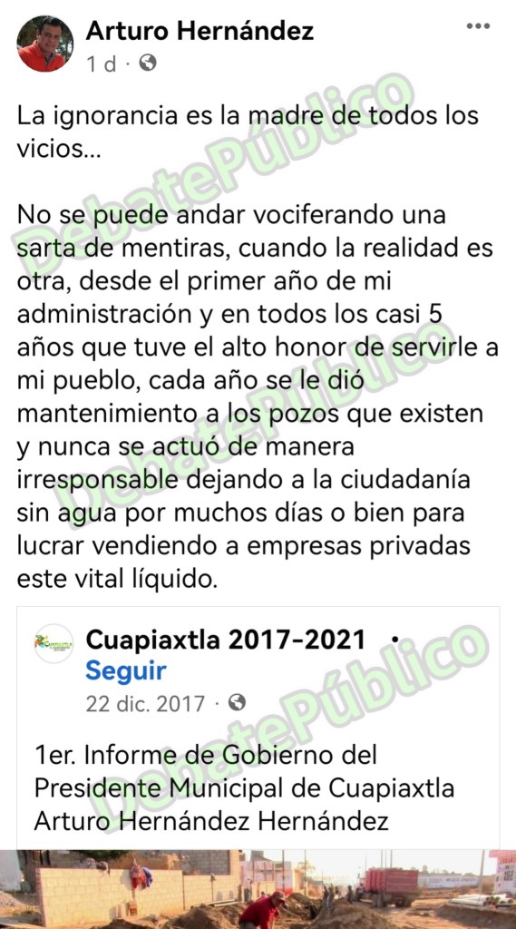 Ante estos señalamientos, el expresidente municipal, Arturo Hernández Hernández, quién gobernó de 2017 a 2021, escribió en sus redes sociales lo siguiente: