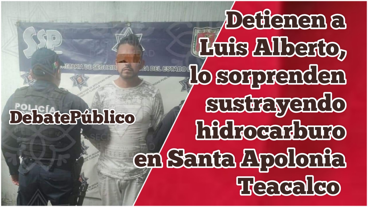 DebatePúblico.- La tarde de este sábado 24 de diciembre, elementos de la Dirección de Seguridad Pública, delegación Nativitas aseguraron a Luis Alberto N., de 32 años de edad, originario del Estado de México, por su presunta responsabilidad en la Violación a la Ley Federal para Prevenir y Sancionar los delitos en materia de Hidrocarburo en su modalidad de sustracción.