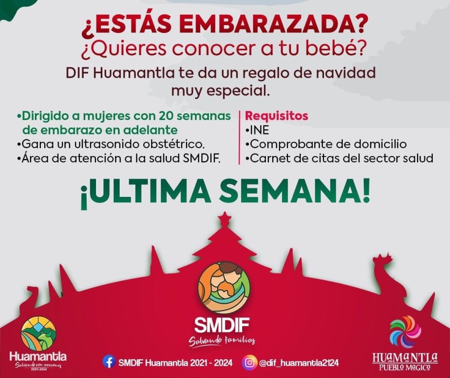 DebatePúblico.- El Sistema Municipal para el Desarrollo Integral de la Familia (DIF) Huamantla, invita a todas las mujeres con al menos 20 semanas de embarazo a recibir un ultrasonido obstétrico gratuito.