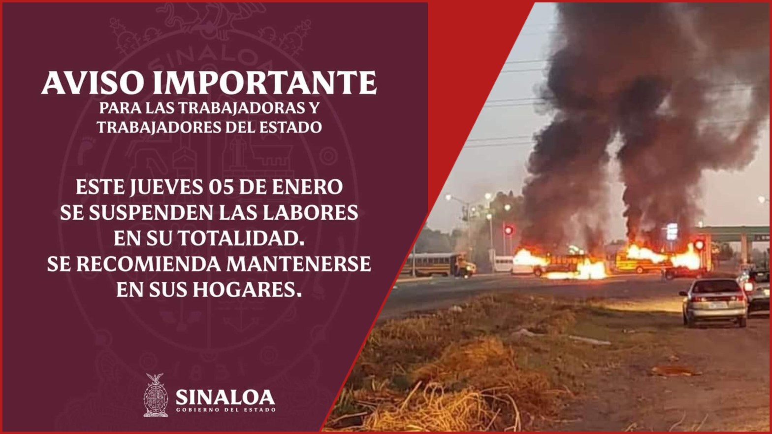 Ante estos hechos violentos, la Secretaría de Educación Pública y Cultura (SEPyC) de Sinaloa determinó suspender en su totalidad las actividades docentes y administrativas en el municipio de Culiacán para este 5 de enero. Lo anterior con la finalidad de salvaguardar la integridad de la comunidad estudiantil.