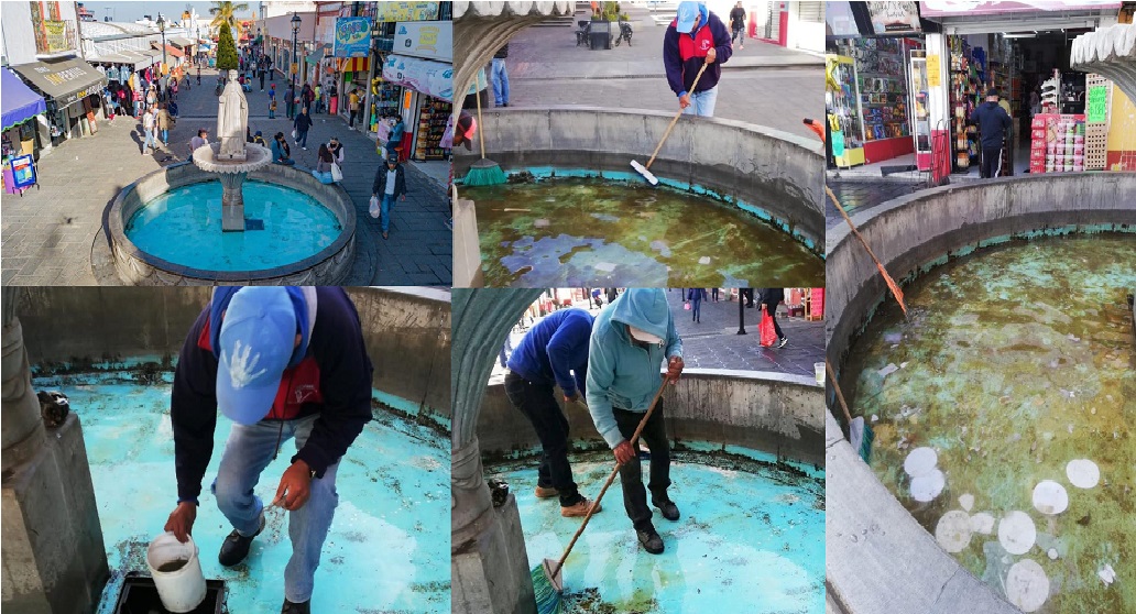 En el sitio, también se realizaron labores de limpieza en la fuente, esto para mantenerla en buen estado luego de que ciudadanos arrojan basura en su interior.