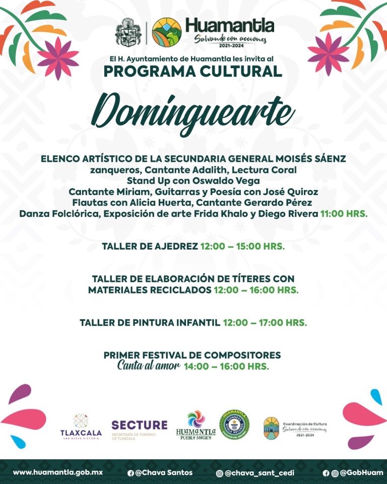 DebatePúblico.- Debido al gran éxito y aceptación de las y los huamantlecos, así como de visitantes, la cartelera artística y cultural del programa “dominguearte” crece este fin de semana.