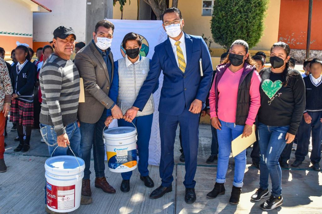 DebatePúblico.- Con el objetivo de mejorar la infraestructura educativa de la Escuela Primaria “Venustiano Carranza” del Pueblo de Hermenegildo Galeana, el presidente municipal Salvador Santos Cedillo, entregó este día botes de pintura en beneficio de la comunidad escolar.
