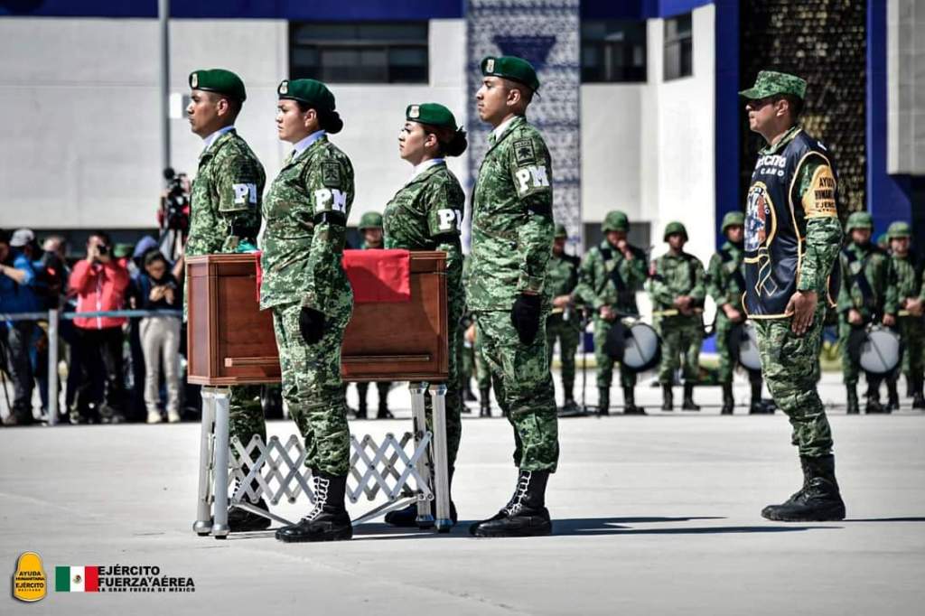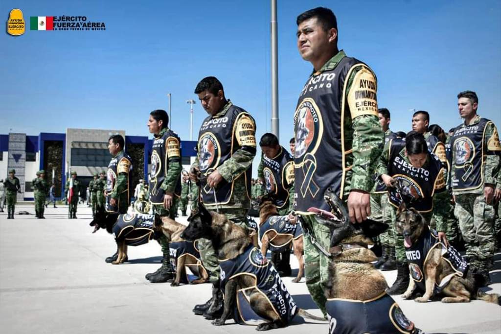 «Además del recibimiento de este personal, se recibió el cuerpo y se le rindieron honores a Proteo, un perro pastor alemán, perteneciente al Equipo de Respuesta Inmediata a Emergencias o Desastres (ERIED) de la SEDENA, quien perdiera la vida en esta misión.»