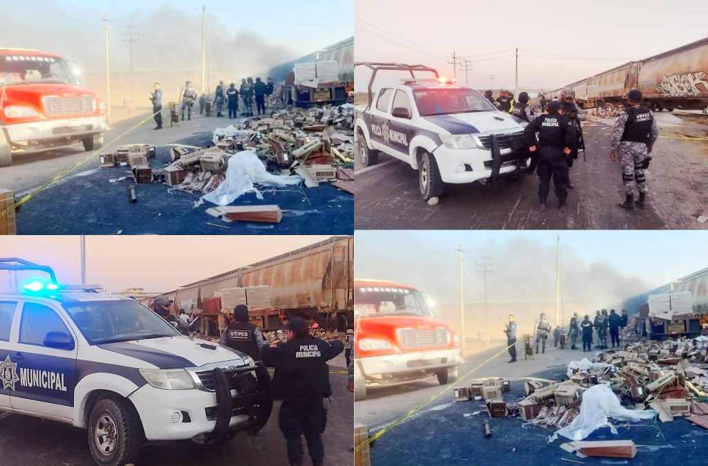 La autoridad municipal informa que, tras este accidente, lamentablemente, se logró ubicar al conductor de la unidad comercial sin vida, esto luego de incendiarse la cabina donde viajaba.