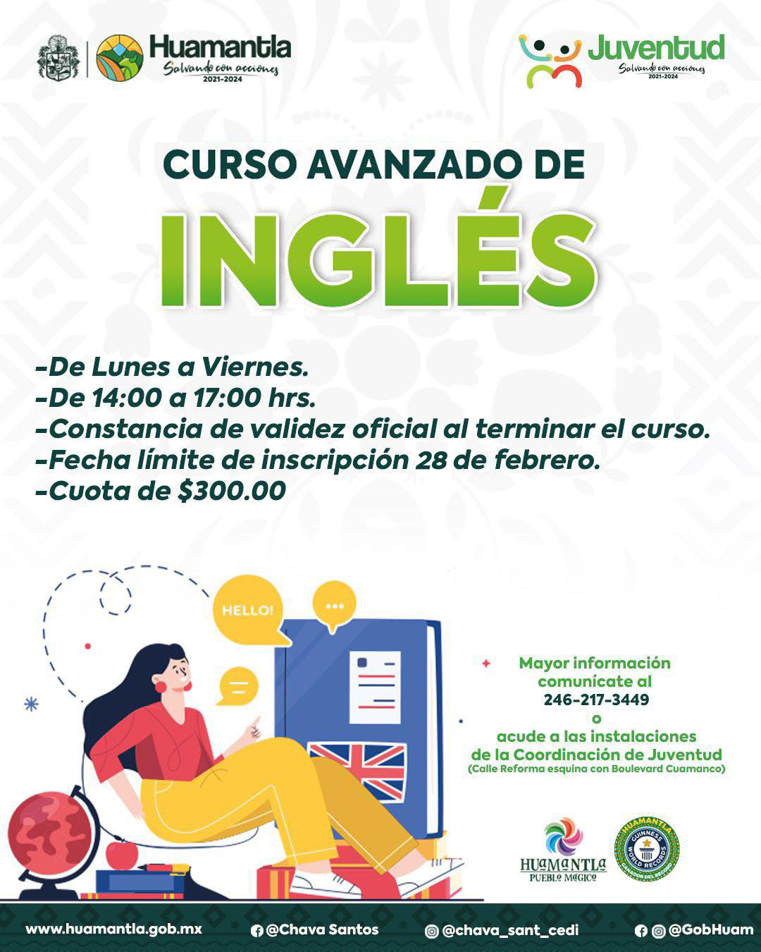 DebatePúblico.- Derivado del gran interés de las y los jóvenes huamantlecos, el H. Ayuntamiento de Huamantla a través de la Coordinación de Juventud, invita a los estudiantes a inscribirse en el curso de inglés avanzado, con fecha límite hasta el 28 de febrero.