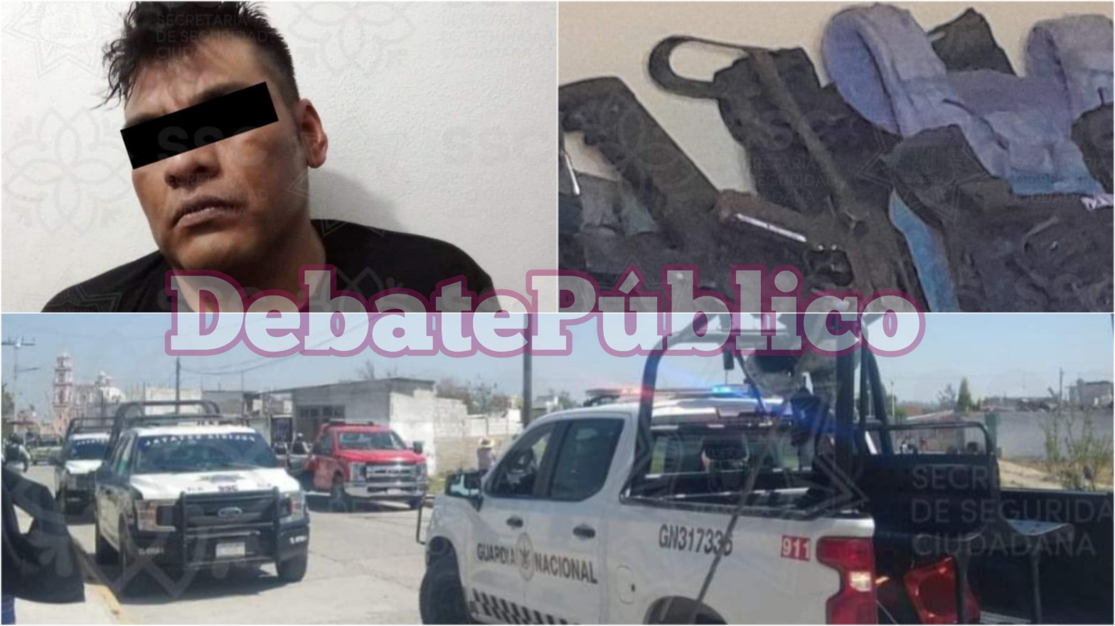 Por lo que «Al intervenir de manera inmediata, los oficiales detectaron en el domicilio cinco armas de fuego y nueve chalecos tácticos. Por ello detuvieron a un masculino y acordonaron la zona con apoyo de la #Sedena y Guardia Nacional para las investigaciones competentes.»