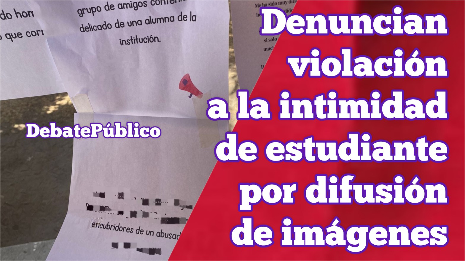ManuelRojas.- En la entrada de una escuela de nivel medio superior ubicada almoriente de la ciudad de Huamantla, fueron colocados algunos letreros denunciando a un estudiante que presuntamente compartió fotografías íntimas de una alumna, algo que de acuerdo a la Ley Olimpia es un delito.