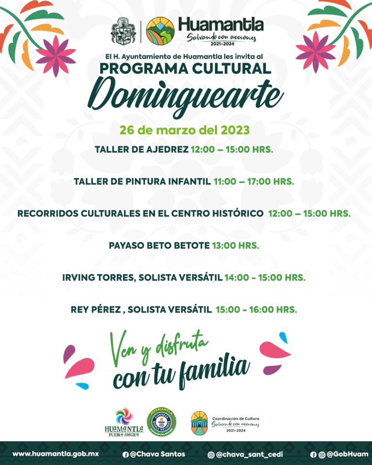 Finalmente, la Coordinación de Cultura del gobierno de Huamantla, informó que, cada domingo se contará con una programación distinta para seguir dando vida al Parque Juárez; por lo que invita a artistas, colectivos y artesanos a seguir participando en este espacio que es de todos los huamantlecos.