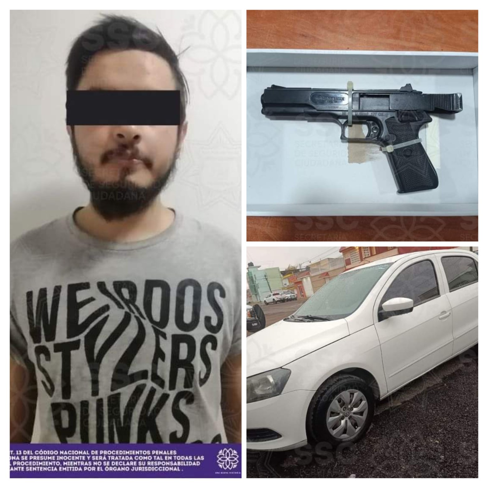 DP.- Durante un operativo realizado en Apizaco, elementos de la Policía Estatal de Caminos y Vialidad aseguraron a Delfino Alberto N., de 23 años de edad por su presunta responsabilidad en la portación de un objeto óptimo para agredir (arma de fuego).