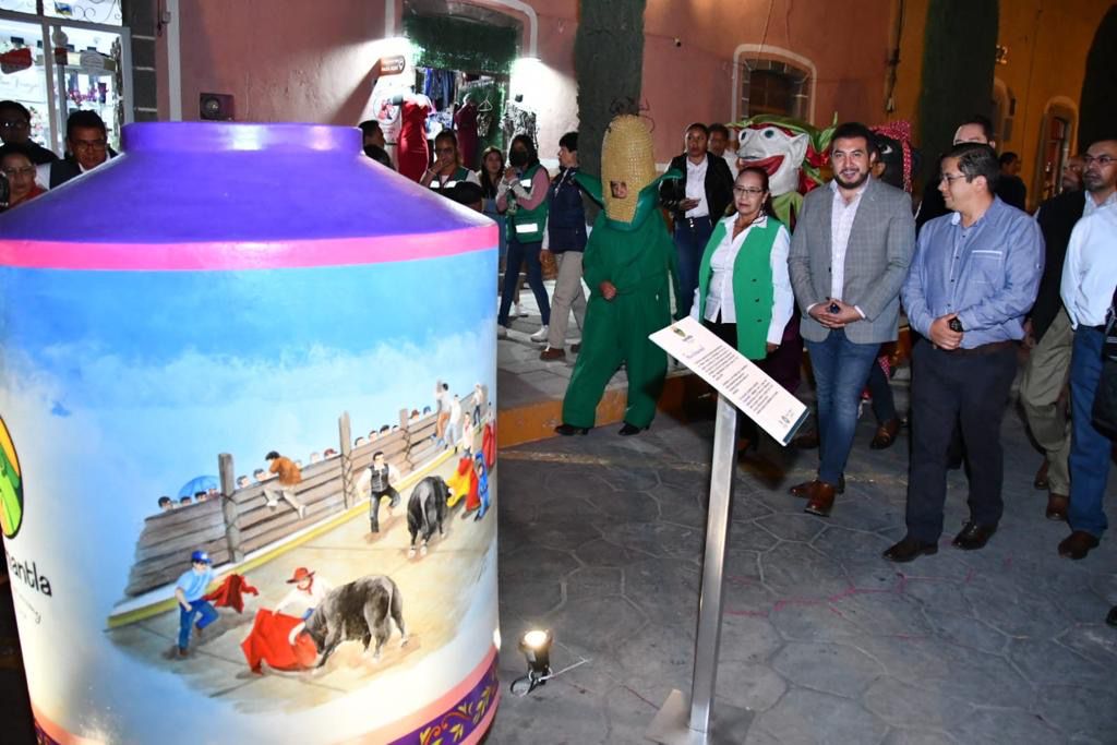 “La grandeza histórica y cultural de nuestro Pueblo Mágico están plasmados en estos murales que hoy presentamos para el disfrute de ciudadanos y visitantes”, mencionó el presidente municipal, Salvador Santos Cedillo, al inaugurar la Expo Muralista en Tinacos “Pasado y Presente de Huamantla”.
